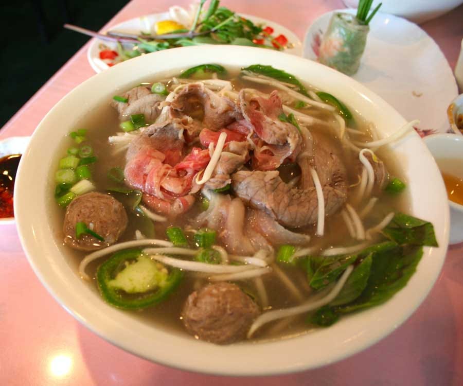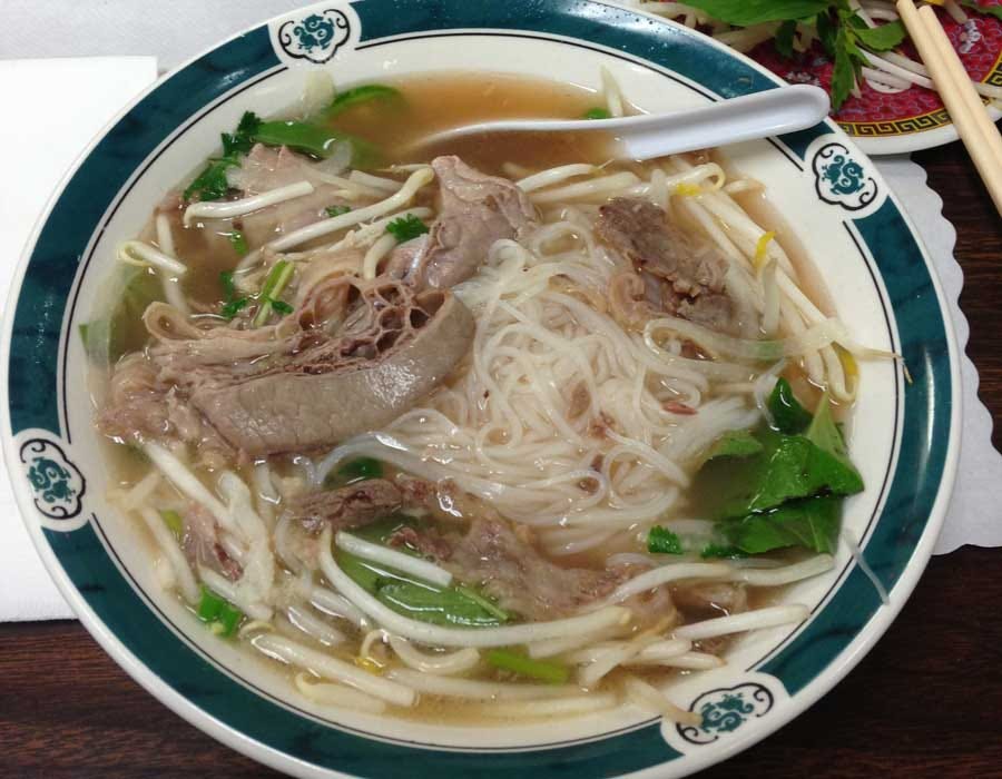 This is a shortened and easier version of the delicious Vietnamese soup called Pho Bac. Garnish with pepper, green chiles, hoisin sauce, chili sauce and lime wedges.Ingredients | Pho Hours Near Me4 pounds bone-in beef shank1 onion5 slices fresh ginger root1 pod star anise, whole1 teaspoon salt2 ½ tablespoons fish sauce1 (8 ounce) package dried rice noodles½ pound cooked beef sirloin, thinly sliced3 green onions, chopped1 ½ cups fresh bean sprouts6 sprigs cilantroDirectionsIn a large pot over medium heat, bring beef shank and 3 quarts water to a boil. Skim off foam. Reduce heat, cover and simmer 4 hours.Preheat oven broiler. Place unpeeled whole onion under broiler until soft. Remove and peel.Stir onion, ginger, anise, salt and fish sauce into beef mixture.Bring a large pot of lightly salted water to a boil. Add rice noodles and cook for 8 to 10 minutes or until al dente; drain.Divide noodles into three serving bowls. Place cooked sirloin on top of pasta in bowls. Sprinkle green onions, bean sprouts and cilantro evenly in bowls. Strain beef broth and divide evenly between serving bowls, pouring over assembled ingredients. Serve at once.The nutrition data for this recipe includes the full amount of the broth ingredients. The actual amount of the broth ingredients consumed will vary.Info | Pho Hours Near Meprep: